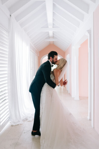 I make creative decision based on setting and mood. My favorite opportunities for black and white are the photos where the bride and groom have raw emotions and during a ceremony in dark churches.